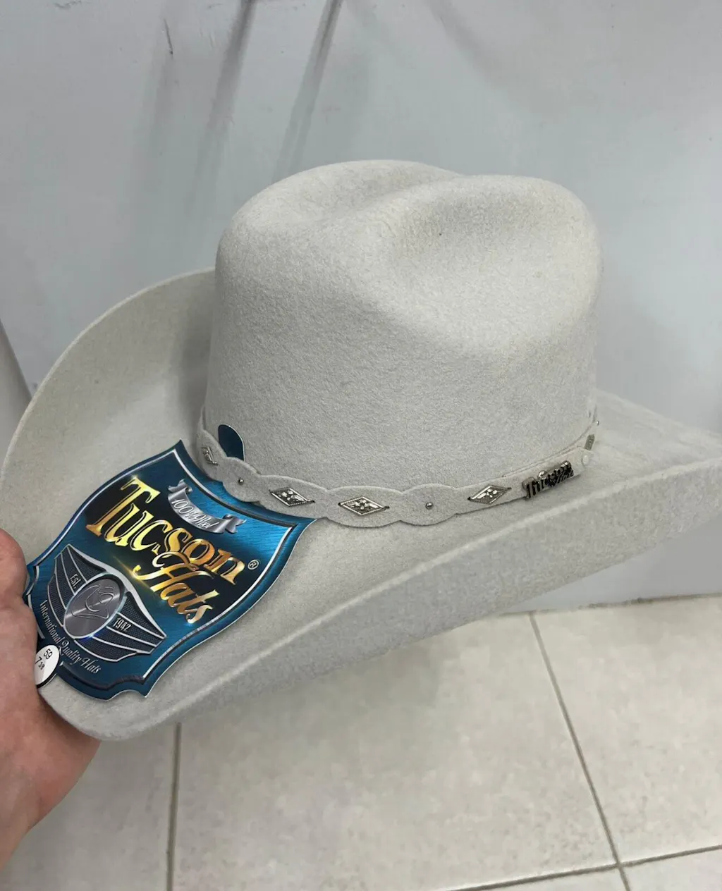 100% Wool Texan. Perfect for those rainy or colder days, or when the event calls for something more elegant. A light gray color that will achieve a clean and elegant look for those special occasions.